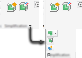 Las herramientas de simplificación ayudan a simplificar los componentes complejos en formas simples que puede crear usando rectángulos o cilindros. Para acceder a las herramientas de simplificación, haga clic en la flecha hacia abajo en el grupo Simplificación de la cinta de opciones.