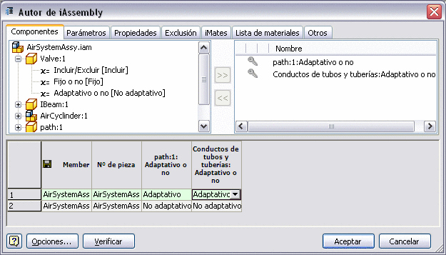 Nota: Un miembro de ensamblaje principal de conductos solo puede ser adaptativo una vez en la familia iAssembly.