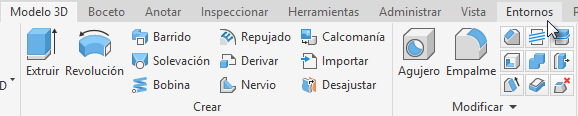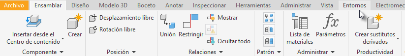- En un archivo de ensamblaje, haga clic en la ficha Entornos de la cinta de opciones.