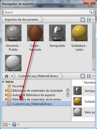 4. Pulse Guardar. La biblioteca aparece en la lista de bibliotecas en la sección inferior del navegador de aspectos.