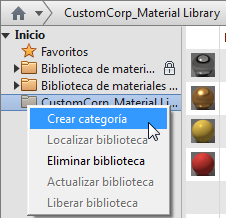 2. En la barra de herramientas del navegador de aspectos (parte inferior), haga clic en (Administrar) y en Crear nueva biblioteca.