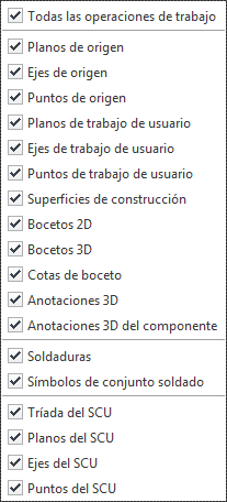 - En el navegador o en la visualización, seleccione una o varias operaciones de trabajo, bocetos u otros elementos.