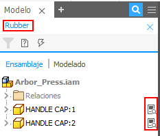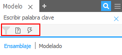 - Activa o desactiva la búsqueda y los filtros (filtros no disponibles en Inventor LT).