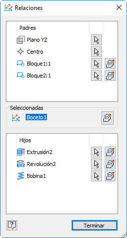 Los bloques de boceto consumidos por operaciones se muestran ahora en el cuadro de diálogo Relaciones.