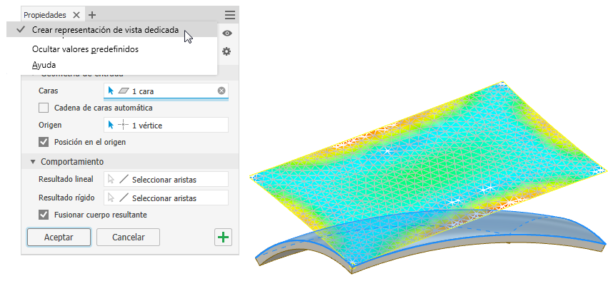 Se muestra un mapa térmico durante el proceso de aplanamiento para poder ver las áreas de mayor a menor tensión. Puede especificar segmentos contiguos para que permanezcan lineales o rígidos.