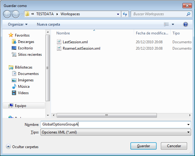 - En el cuadro de diálogo Guardar como, escriba el nombre del archivo de configuración. Puede seleccionar el nombre de un archivo de configuración existente si desea sobrescribirlo con la configuración modificada.