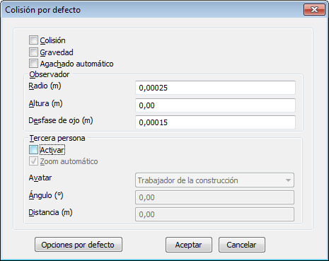 - En el cuadro de diálogo Colisión por defecto, seleccione las opciones por defecto con las que desea que se inicie Autodesk Navisworks.