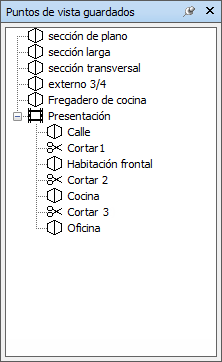 La ventana Puntos de vista guardados es una ventana anclable que permite saltar a puntos de vista prefijados sin tener que navegar cada vez para ir hasta un elemento.