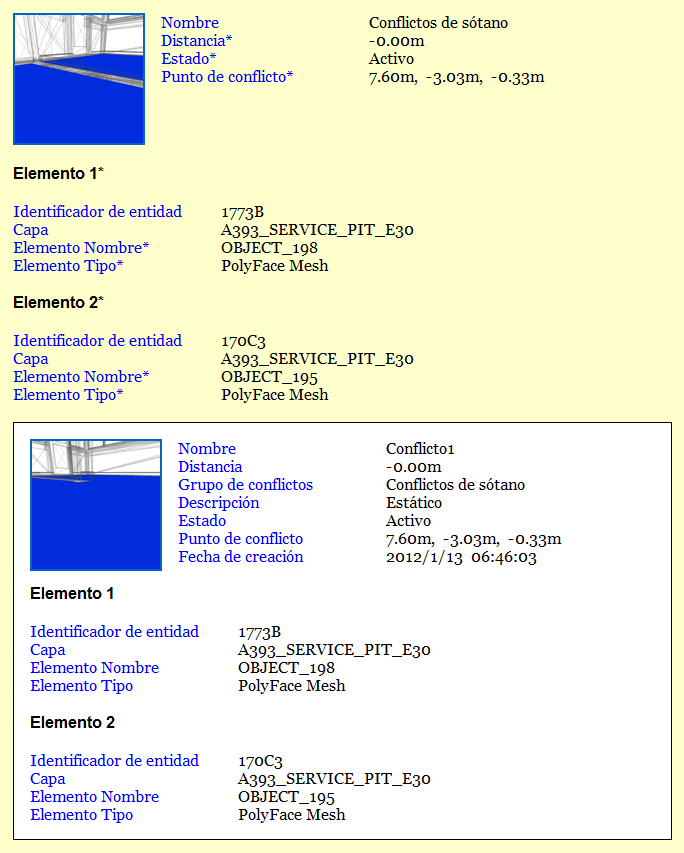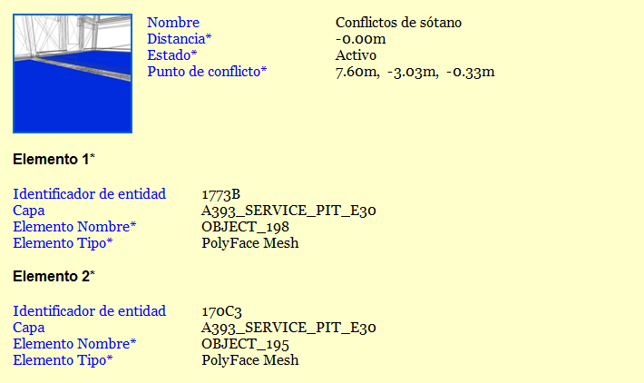 - HTML: crea un archivo HTML con todos los conflictos y un archivo jpeg con los puntos de vista de los conflictos y los datos relacionados. Si elije esta opción, deberá seleccionar o crear una carpeta para los archivos y especificar un nombre para el archivo html.