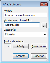 - En el cuadro de diálogo Añadir vínculo, especifique el nombre del vínculo en el cuadro Nombre.