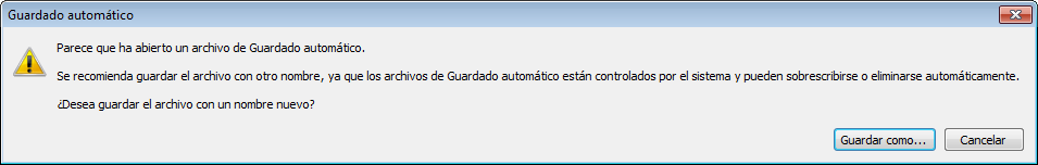 En el cuadro de diálogo Abrir, acceda a la carpeta de las copias de seguridad. Por defecto, es <perfil de usuario>\AppData\Roaming\<carpeta de producto>\AutoSave.