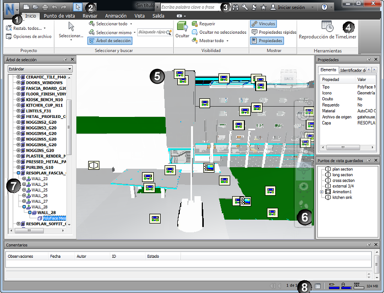 En esta sección, se describen brevemente los componentes principales de la interfaz estándar de Autodesk Navisworks.