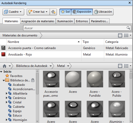 Una biblioteca de materiales es una colección de materiales y objetos relacionados. Algunas bibliotecas se suministran con Autodesk y otras las crean los usuarios.