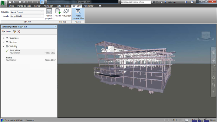 Inserte vistas compartidas entre BIM 360 Glue y Navisworks. Las vistas compartidas se sincronizan en tiempo real.