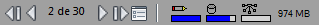 La esquina derecha de la barra de Estado incluye cuatro indicadores de rendimiento que aportan información constante sobre el funcionamiento de Autodesk Navisworks en el equipo, un botón para alternar la ventana Navegador de planos y controles para desplazarse entre planos/modelos en archivos de varios planos.
