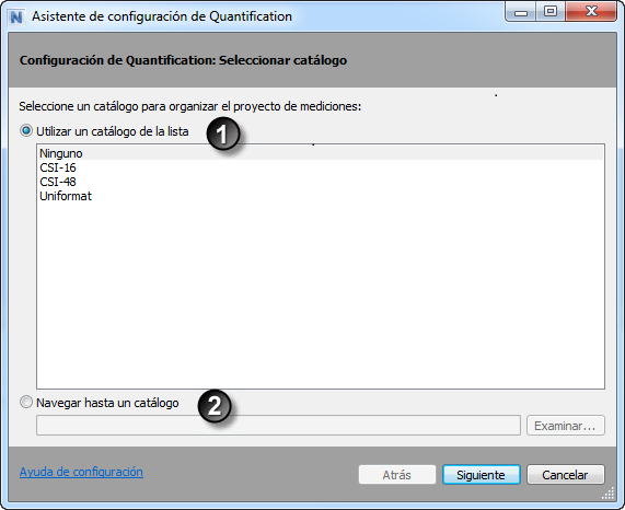 1. Usar un catálogo de la lista. Los catálogos de esta lista son los que su empresa utiliza frecuentemente y los ha integrado el ingeniero de TI antes de que usted comience a utilizar Quantification.