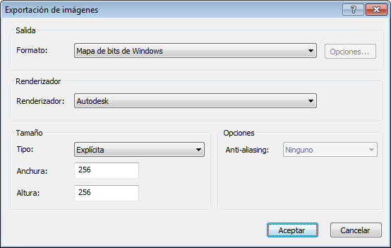 4. Utilice las áreas Tamaño y Opciones para definir el tamaño de la imagen. Consulte Cuadro de diálogo Exportar imagen.