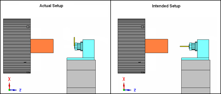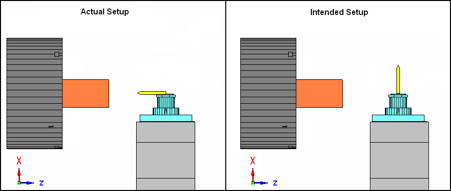 Error 2: You are attempting to mount a Z-oriented tool in an X-oriented position on a turret that cannot rotate about the B-axis.