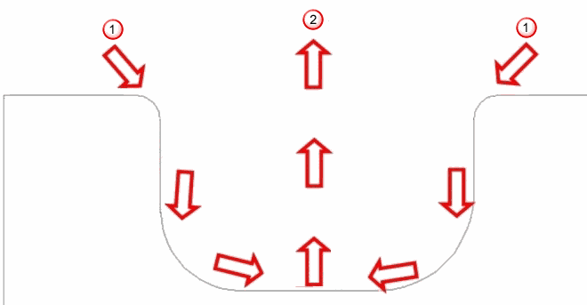 When using a button-end grooving tool, the bottom of the groove must be a circular arc. Make sure the diameter of the circular arc is not smaller than the width of the grooving tool.