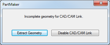 When switching from CAM mode to CAD mode, PartMaker checks if all profile elements in CAM mode have corresponding geometric elements in CAD mode. If any geometric elements are missing, PartMaker displays a message allowing you to extract geometry from the profile elements: