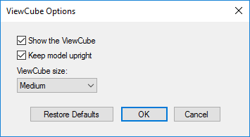 Use the ViewCube Options dialog to modify the behaviour and appearance of the ViewCube.