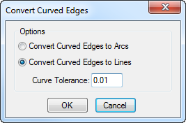 Use the Convert Curved Edges dialog to specify how to convert curved edges when transferring geometry from a Solids window into a Face window.