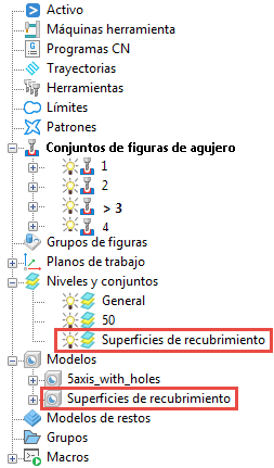 - Se crea un Modelo de superficies de recubrimiento y un Nivel.