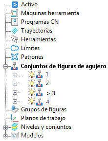 PowerMill reconoce los agujeros seleccionados y crea varios conjuntos de figuras de agujero.