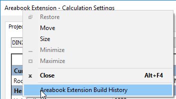 2. Haga clic con el botón derecho en la barra de título del cuadro de diálogo y, en el menú contextual, seleccione Areabook Extension Build History.