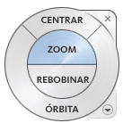 Nota: Al utilizar la herramienta Zoom desde la rueda de navegación completa o la rueda de visualización de objetos, el punto de la vista en que haga clic para aplicar zoom se convierte en el punto central para posteriores operaciones de Órbita hasta que utilice de nuevo la herramienta Zoom o use la