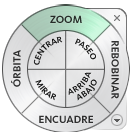 Nota: A diferencia de la herramienta Zoom en la rueda grande de visualización de objetos, no hay restricciones para la herramienta Zoom de la rueda pequeña de visualización de objetos y las ruedas de navegación completa.