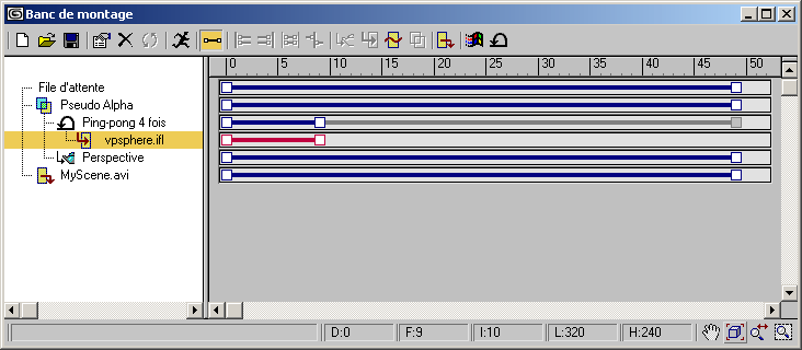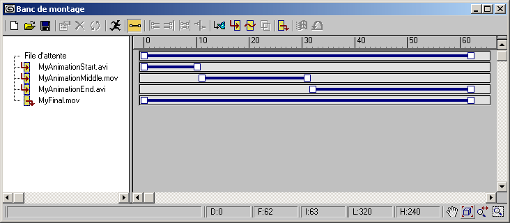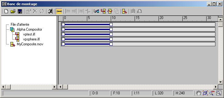 Un autre processus courant pour lequel le banc de montage est utilisé consiste à convertir une série de rendus sous forme d'images en animation. Pour réaliser cette tâche, vous devrez utiliser un fichier IFL.