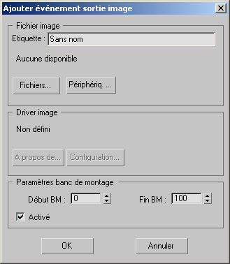Les boîtes de dialogue Ajouter événement sortie image et Editer événement sortie image présentent les mêmes commandes.