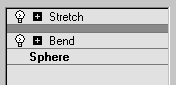 L'icône en forme d'ampoule située à gauche du nom du modificateur indique qu'il est " désactivé dans le rendu ".