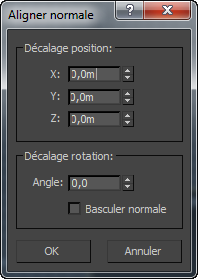 La boîte de dialogue Aligner normales vous permet de définir (ou d'annuler) l'axe en cours. Elle contient les options suivantes :