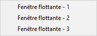 - Ouvre une fenêtre flottante. La fenêtre fonctionne de la même façon qu'une fenêtre standard et est entièrement configurable. La fenêtre n'est pas ancrable, mais il est possible de la déplacer afin de l'utiliser sur un autre écran si vous utilisez plusieurs écrans. Vous pouvez afficher un maximum de trois fenêtres flottantes en même temps.