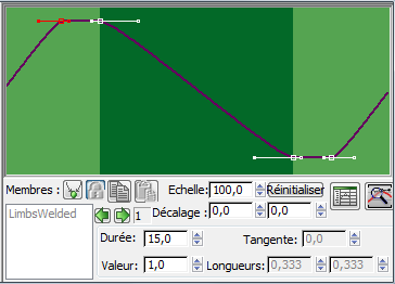 Pour un humain, ce paramètre s'anime généralement entre l'orteil (1,0) pour l'élévation et le talon (0,0) pour la station, comme le montre l'illustration suivante.