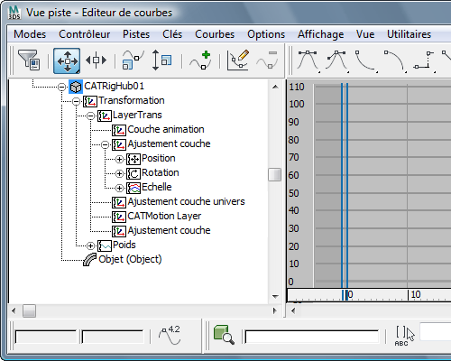 Seules les couches actuellement impliquées dans la pose et l'animation des ossatures CAT sont affichées.