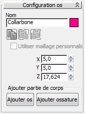 Ajoute des objets d'ossature à la clavicule (notamment des accessoires). Pour plus de détails, reportez-vous à la rubrique Pour ajouter des objets d'ossature.