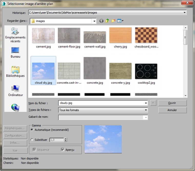 Gamma). Dans le cas contraire, les commandes gamma ne sont pas disponibles dans la boîte de dialogue Sélectionner image d'arrière-plan.