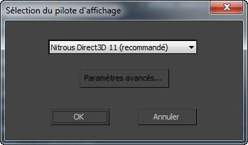 Vous pouvez en outre définir le pilote graphique au démarrage de 3ds Max à partir de la ligne de commande.
