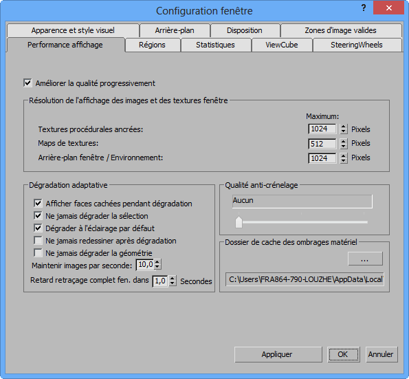 Les paramètres de dégradation adaptative sont enregistrés dans le fichier de scène MAX.