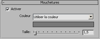 Définit la taille des particules. Cette option peut être utile pour la mise à l'échelle dans les rendus. Intervalle : de 0,0 à 100,0. Valeur par défaut = 1,5.
