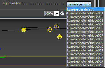 En général, les ombrages FX sont codés afin d'utiliser un nombre spécifique de lumières (la plupart du temps, une seule). Si le fichier FX que vous ouvrez est codé, les groupes de fonctions spécifiques à l'ombrage affichent une commande vous permettant de choisir la lumière à utiliser. Par exemple :