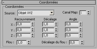 En ajustant les paramètres des coordonnées, vous pouvez déplacer une map par rapport au volume de l'objet auquel elle est appliquée.