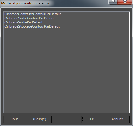Si aucun matériau de la scène ne porte le même nom que les matériaux de la bibliothèque, 3ds Max affiche un avertissement à ce sujet.