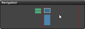 Le rectangle rouge dans le Navigateur indique la bordure de la vue active. Pour modifier la focalisation de la vue, faites glisser le rectangle dans le navigateur.
