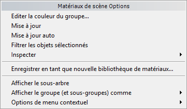 Ce menu permet de gérer le groupe Matériaux de scène.