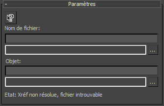 Affiche le chemin et le nom du fichier scène contenant la source de l'objet référence externe. Vous pouvez modifier le contenu de ce champ pour pointer vers un chemin et un fichier différents.