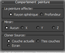 - Ouvrez le panneau déroulant Paint Behavior (Comportement Peinture) et notez que Clone Source (Cloner source) est défini sur Couche courante.